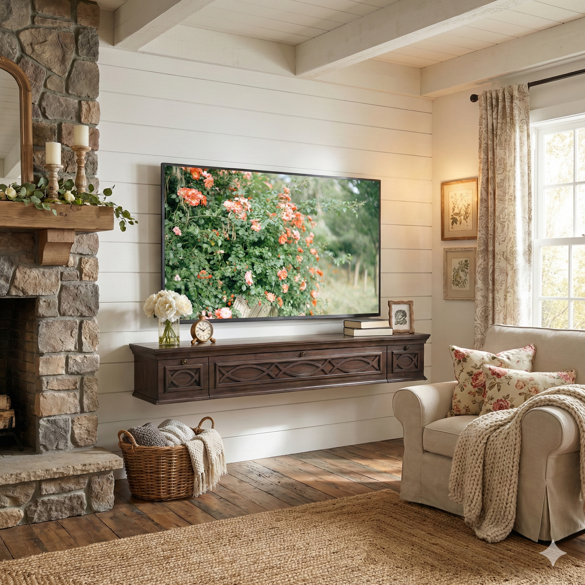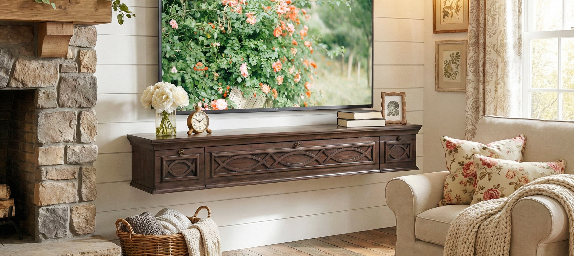 We could not be happier with this floating TV entertainment center. From the moment it arrived, the experience was smooth. Everything came fully preassembled, which was honestly a huge relief and saved us so much time and stress. The mounting system itself is incredibly straightforward and feels very secure. Once it was up, we immediately felt confident trusting it on the wall.