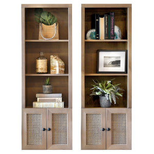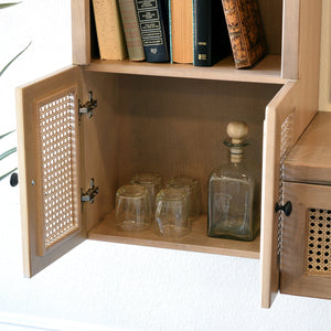 The Solid Poplar Framing and Genuine Birch Plywood adorns the high-end nature of this bookshelf. The front of each door features natural woven cane.