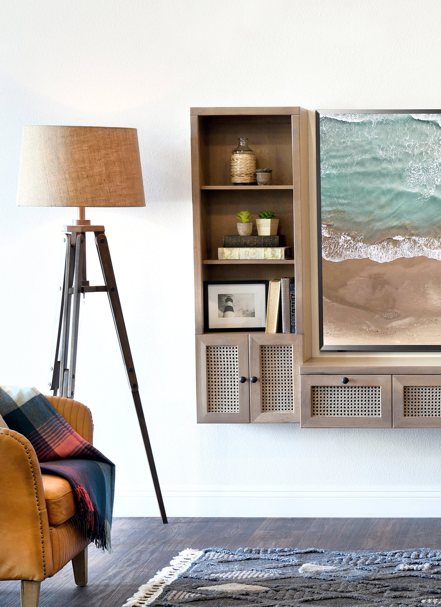 Designed to pair with our Sugar Cane Console collection. If mounting separately for a different storage use, we recommend an L shaped bracket on the bottom to hold the bookcase against the wall when opening lower doors. They already include upper wall hardware to hang on wall.