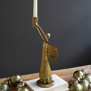 Metal Christmas Angel Taper Candle Holder - Antique Gold