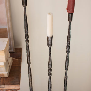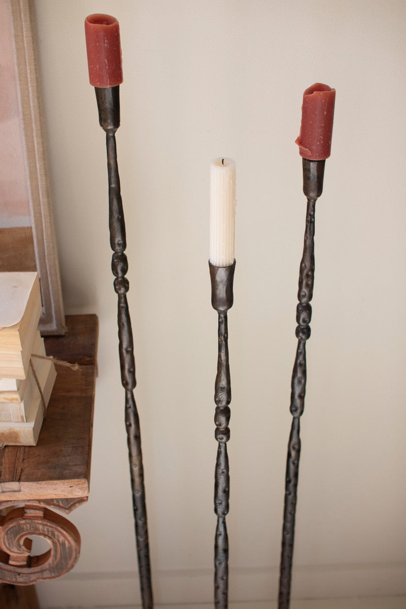 Set Of 3 Tall Forged-Iron Taper Candle Holders