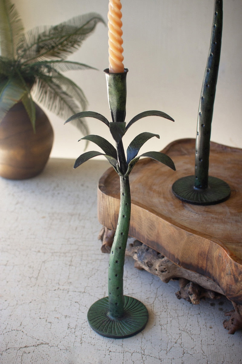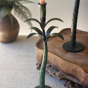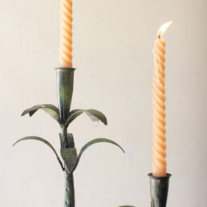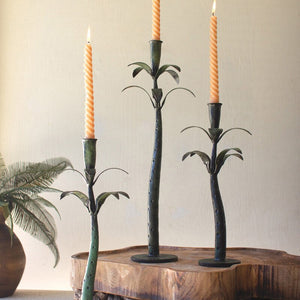 Set Of Three Iron Palms Taper Candle Holders - Patina