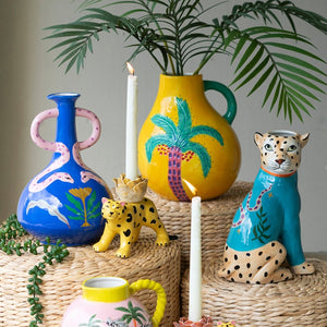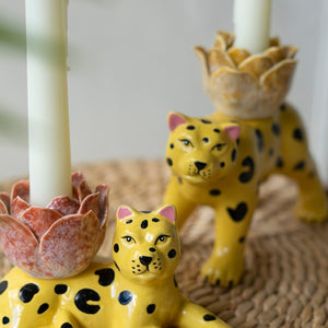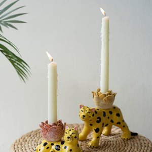 Set Of Two Ceramic Cheetah Taper Candle Holders