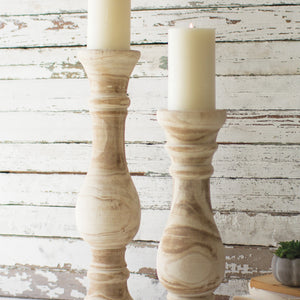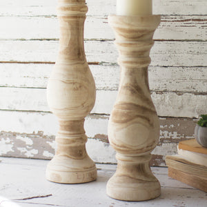 Equal parts classic and modern, these wooden candle stands set the scene for a sophisticated statement piece. Thoughtfully crafted and light to the touch, this set makes a wonderful dinner party centerpiece or accent.