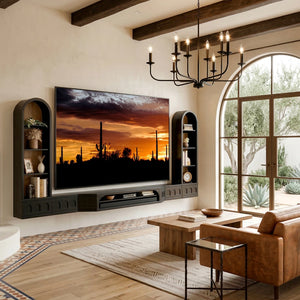 Floating TV Stand Curved Oak Arched Wall Mount Entertainment Center For Up To 110" Screens - Santa Barbara - Black
