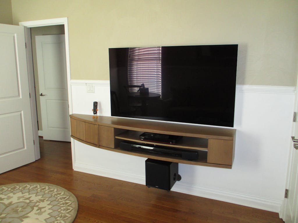 Floating TV Stand Curved Wall Mount Entertainment Center - Arc - Ginger