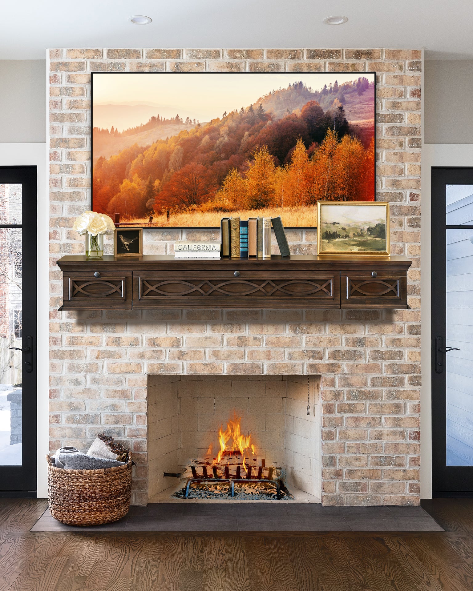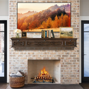 Traditional Handcrafted 72" Floating TV Stand Media Fireplace Mantel Console - Galilee - Espresso