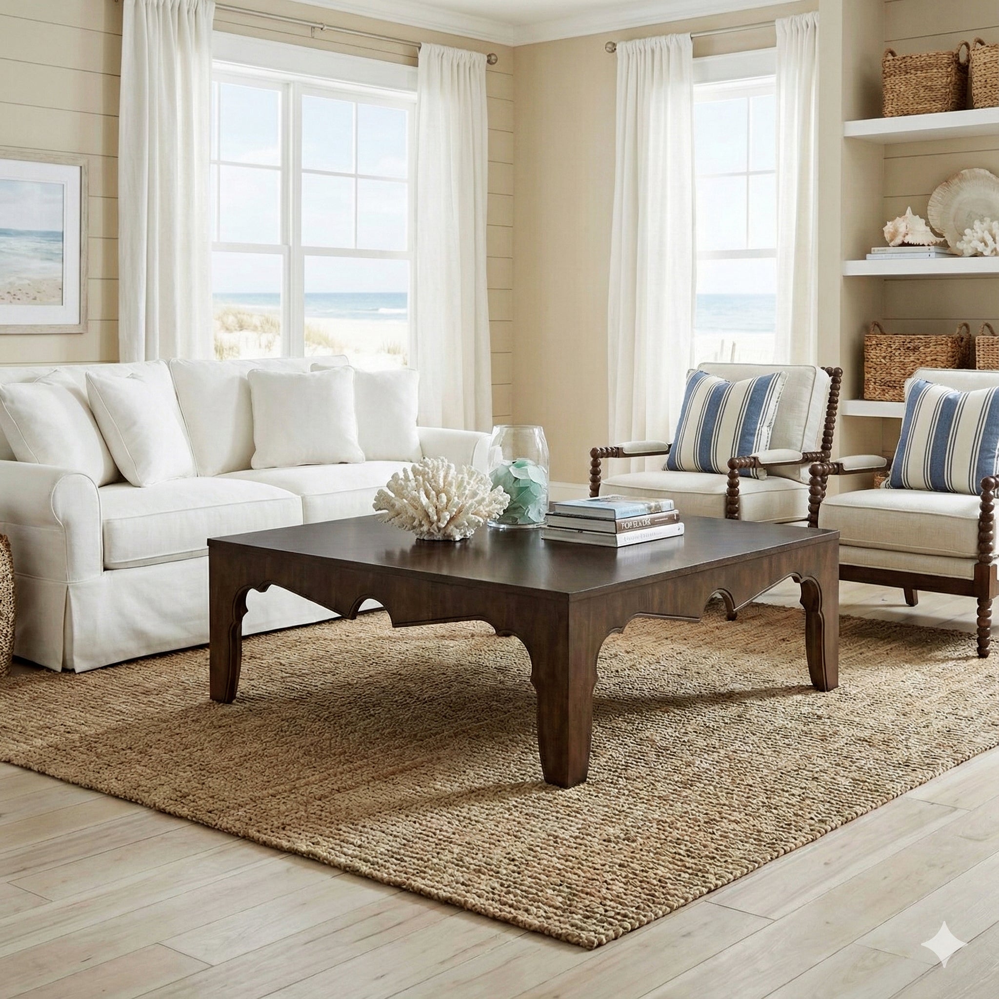 Contemporary Modern Scalloped Island Manor Coffee Table - Truffle Brown