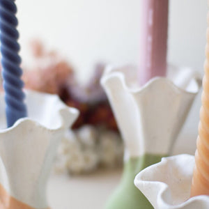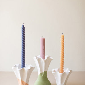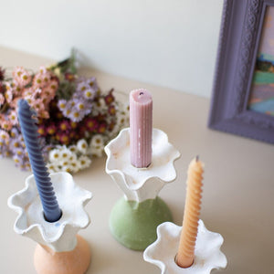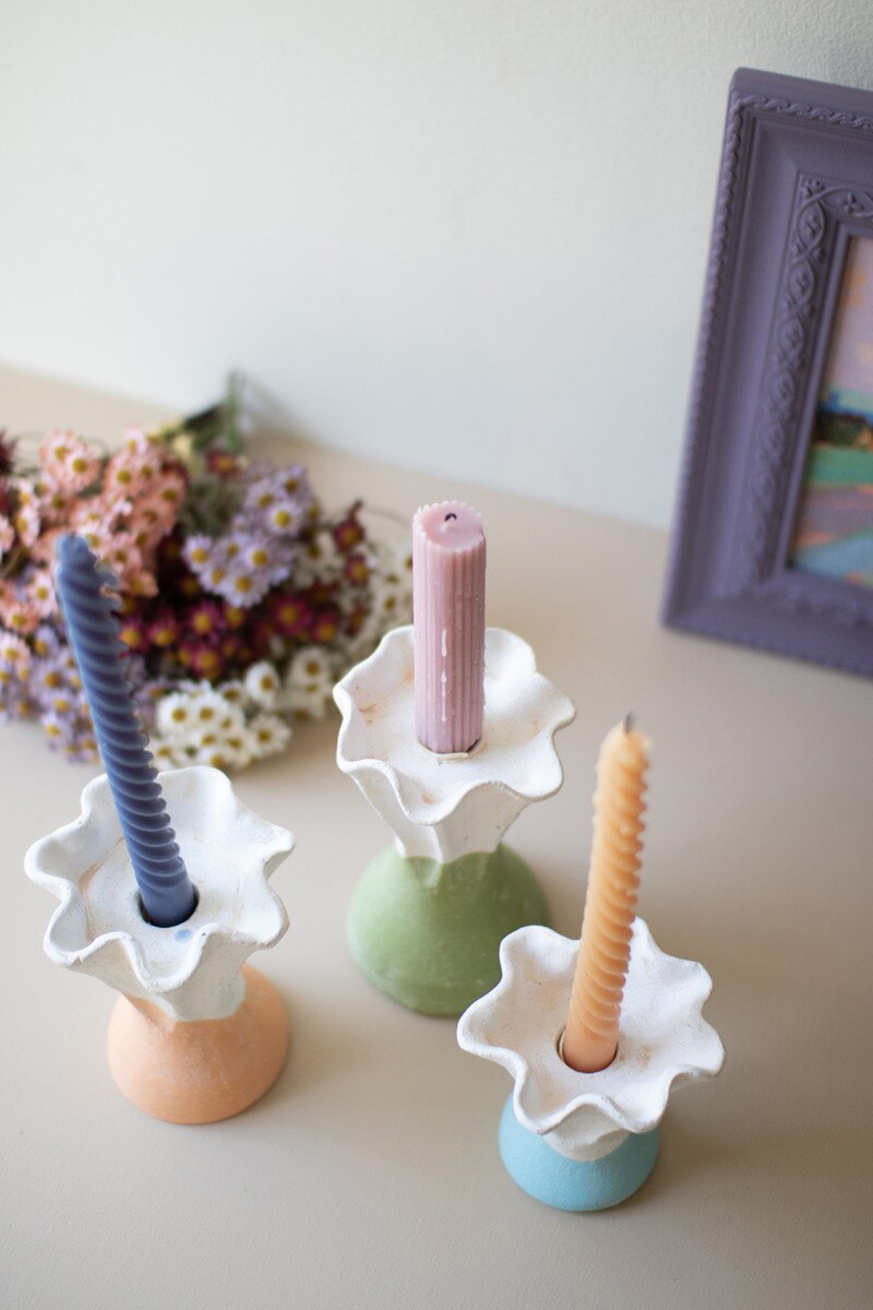 Set Three Color Dipped Clay Flower Taper Holders