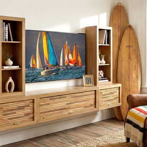 Floating TV Stand Coastal Wall Mount Entertainment Center With Bookcases - ECO GEO - Wheat