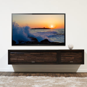 Woodwaves Handcrafted Floating TV Stand Modern Wall Mount Entertainment Center - ECO GEO - Espresso