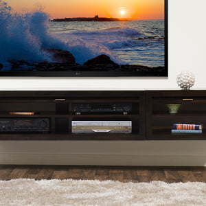 The Solid Poplar framing and Genuine Maple Veneers over Engineered Plywood adorns the high-end nature of this entertainment center.
