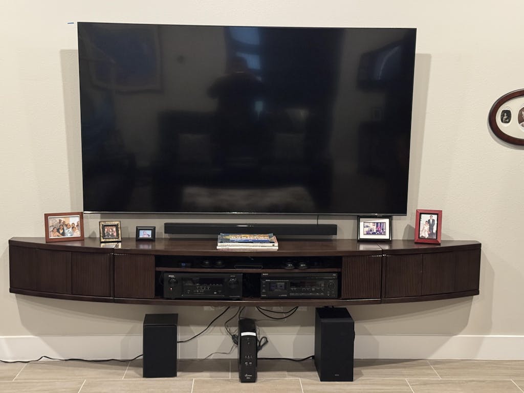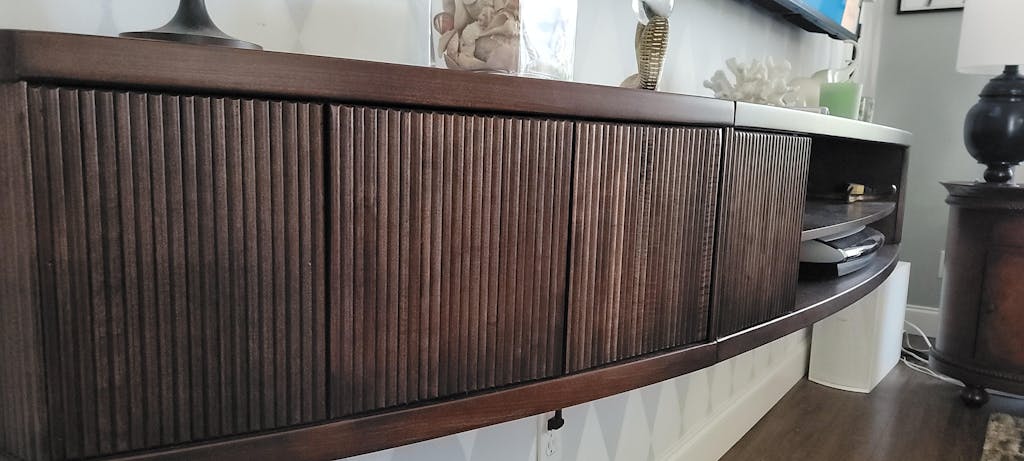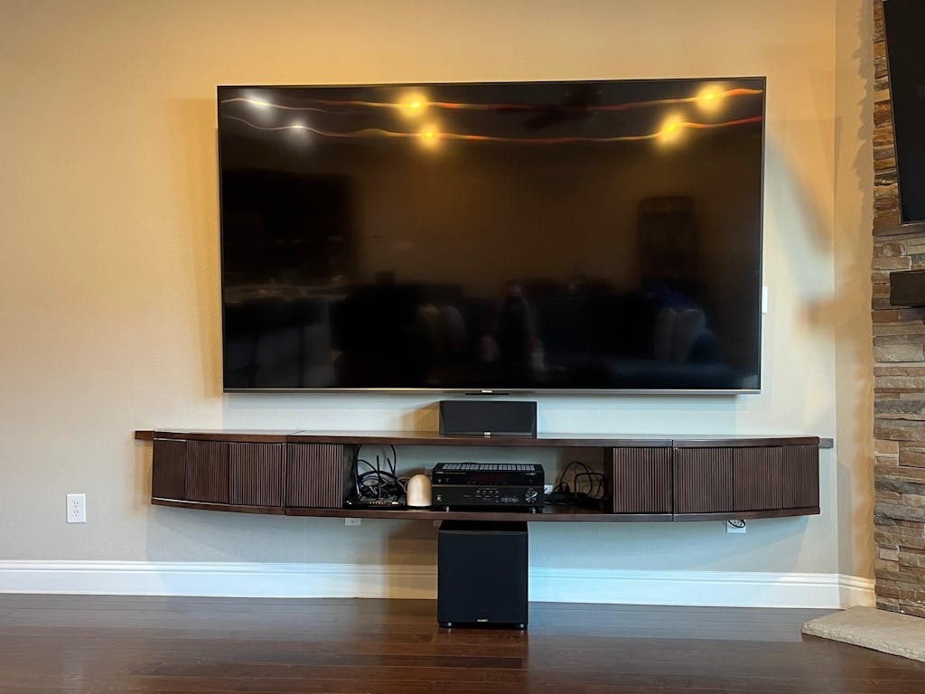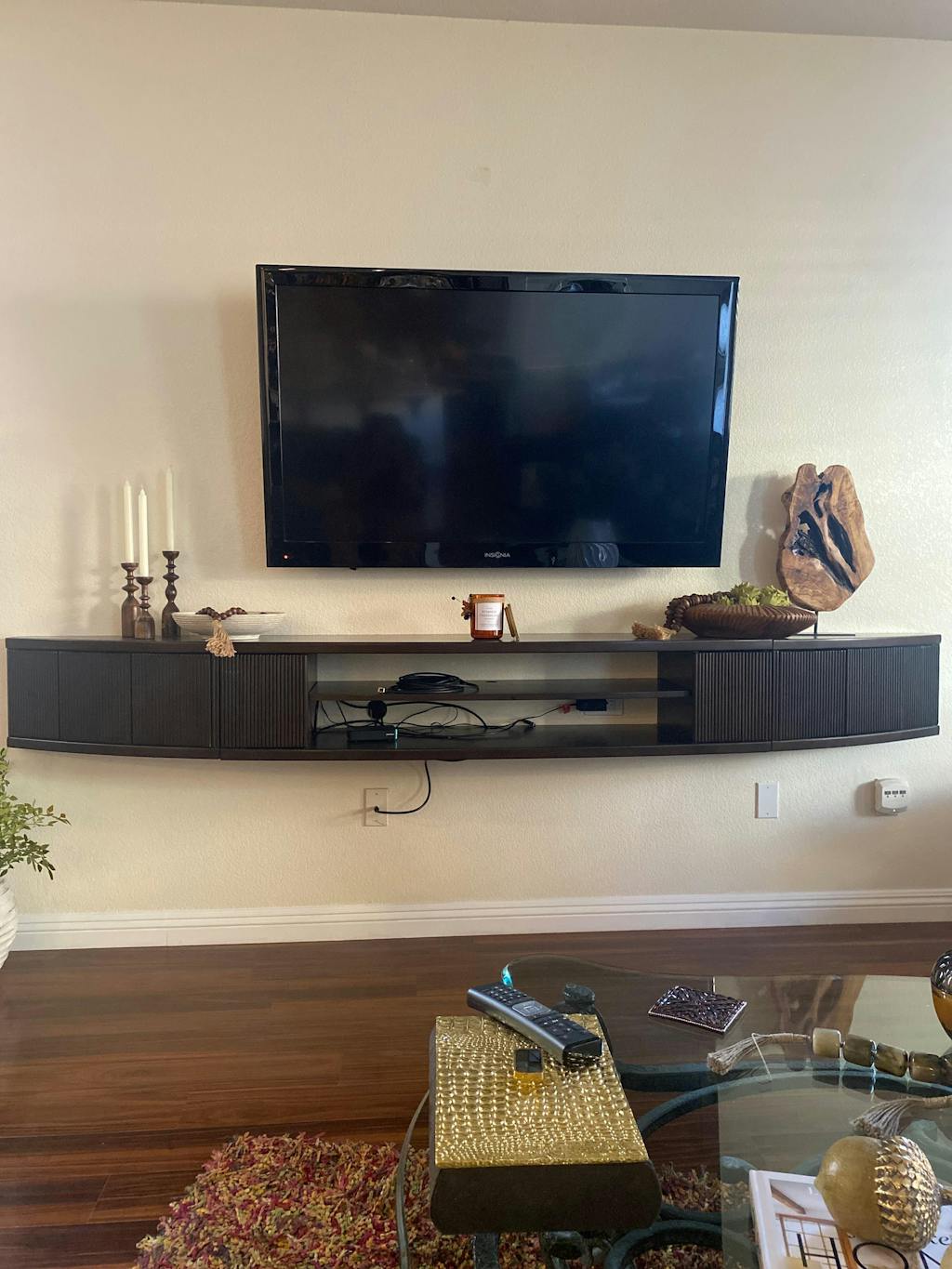 We are extremely pleased with our new curved expresso entertainment center! It was meticulously packed and arrived in excellent condition! The installation was simple and we couldn’t be happier!