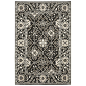 Charcoal Black Grey Ivory Beige Taupe Traditional Area Rug